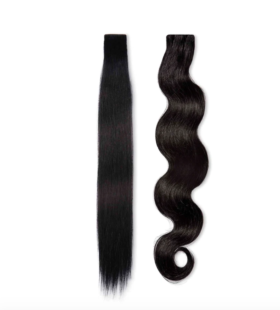 Raw Human hair Tape in extensions. Our quality of raw Tape ins give a seamless natural look. Tape in extensions offer versatility to any hair style. To fill a full head of hair with tape in’s you will need to order at least 3–4 packs. Each pack comes with 20 pieces. It takes 2 pieces to make one complete tape in.